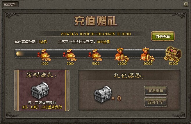 5)  定时送礼:0时,12时,19时,在线玩家可获得在线礼包