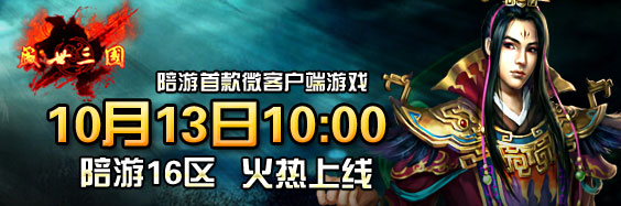 陪游《盛世三国》16区将于10月13日上午10:00震撼开启,与此同时,我们还为各位玩家准备了丰富的活动和好礼,助英雄们驰骋沙场!